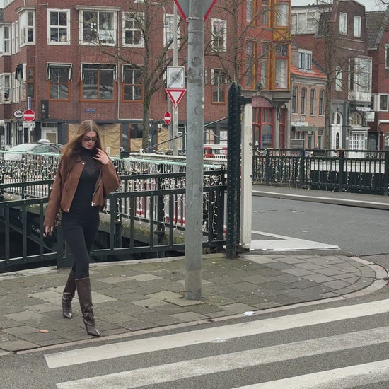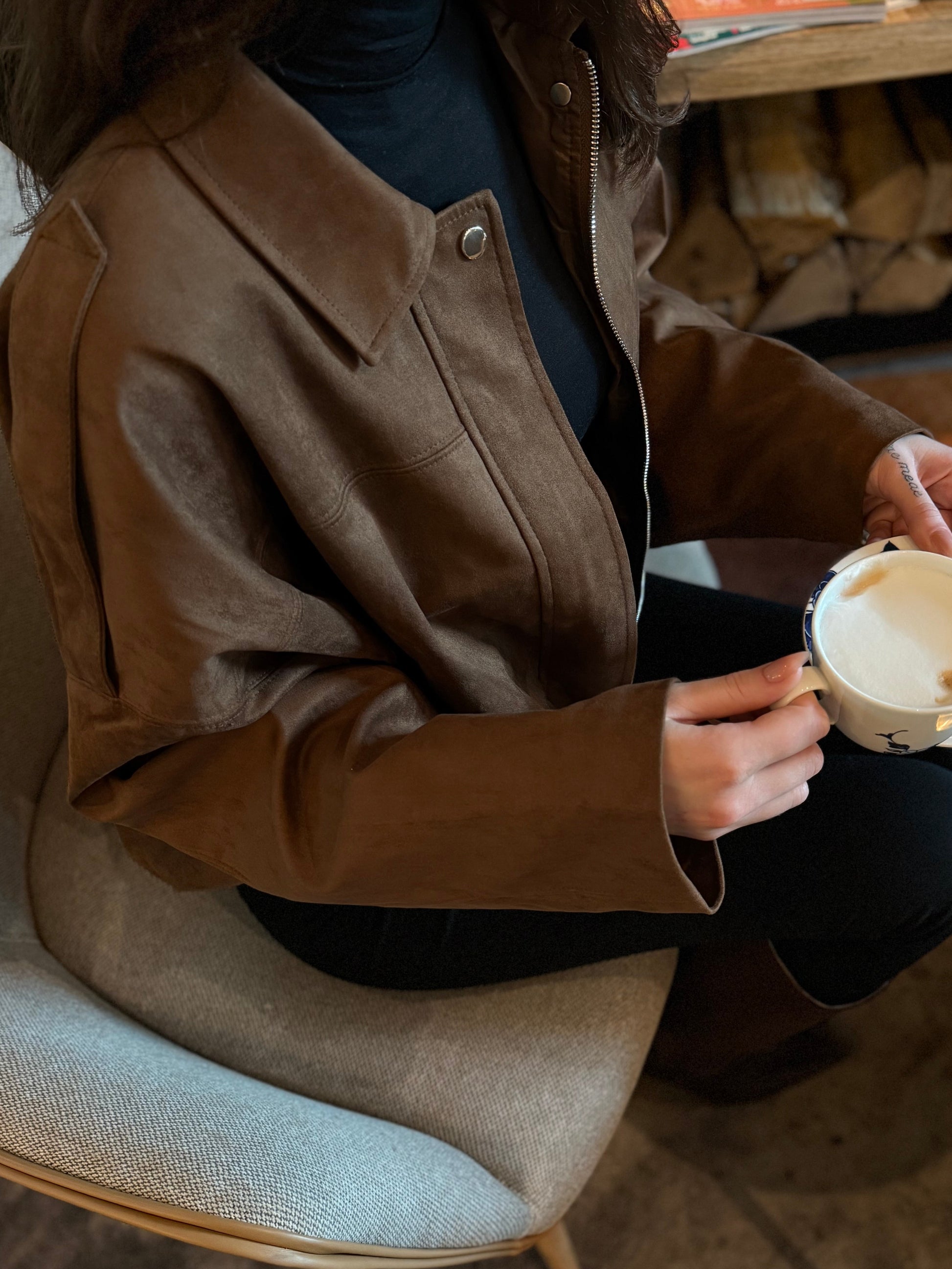 Het Maison Célora Lea Bomber in de kleur Camel is een sophisticated essential voor iedere garderobe. Het jack is vervaardigd uit een zachte suèdelook kwaliteit met een luxe uitstraling. Dankzij de oversized fit en minimalistische afwerking creëer je moeiteloos een moderne, stijlvolle look. Combineer de Lea Bomber met een jeans voor een casual chic outfit of met een pantalon voor een verfijnde, feminine look.